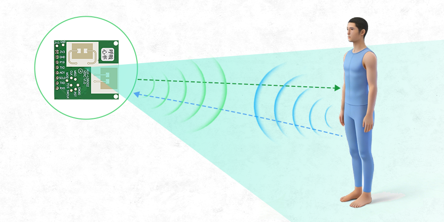 LD6002系列雷达模组采用60GHz毫米波技术,基于FMCW(调频连续波)工作机制,通过发射电磁波并接收人体反射的回波信号,实现对人体生命体征的精准感知。